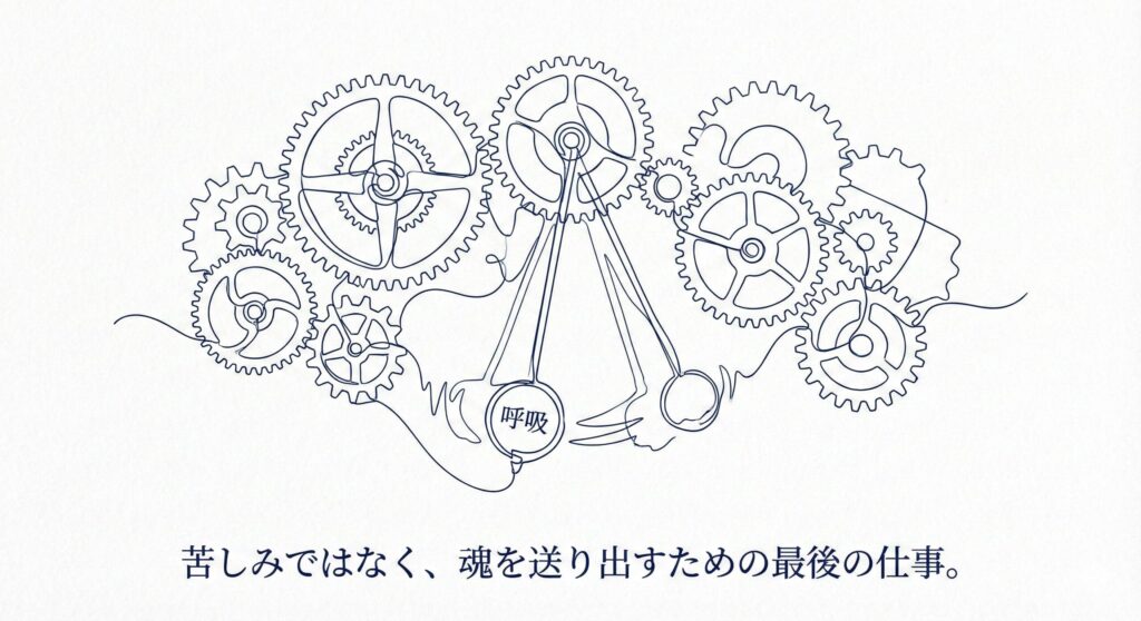 「落ち着いてください。それは**『死戦期呼吸(下顎呼吸)』**と呼ばれるものです。獣医学的に解説しますと、脳幹の機能が停止する直前に起こる反射運動であり、意識レベルはすでに消失しています」