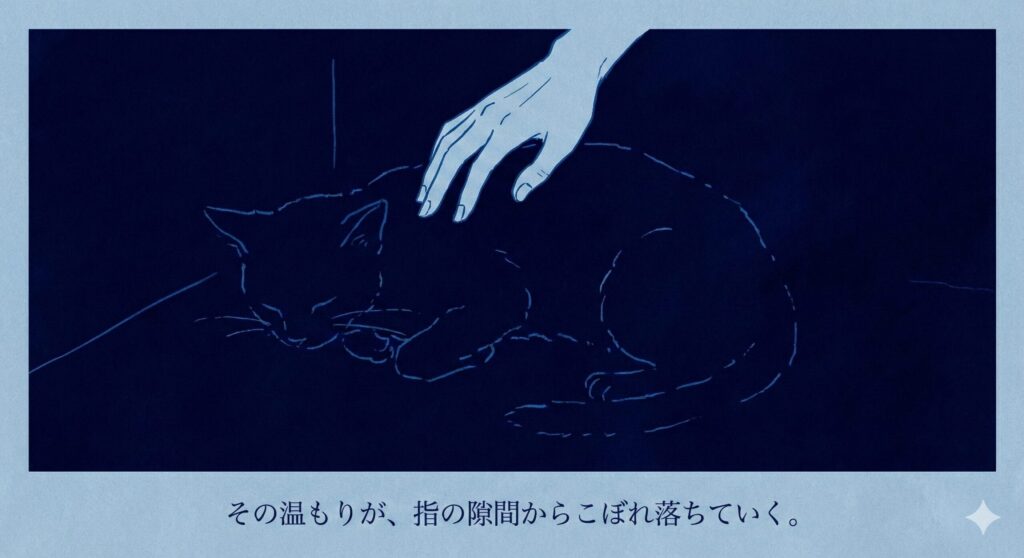 「でも、寒いと思って……毛布いっぱい掛けて、カイロも入れて。ずっと撫でてた。だって、冷たいんだもん。肉球が、氷みたいに……」