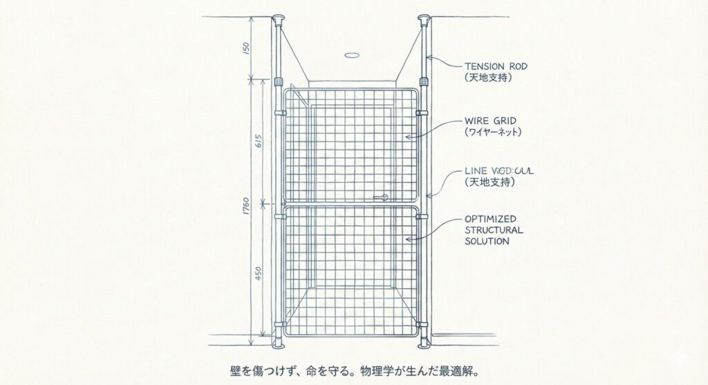 【設計図】ワイヤーネット×突っ張り棒で作る「命のバリケード」